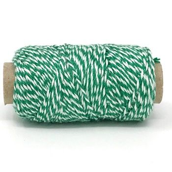 Gezwirnt aus 2 Fäden (1 x grün, 1 x weiß)