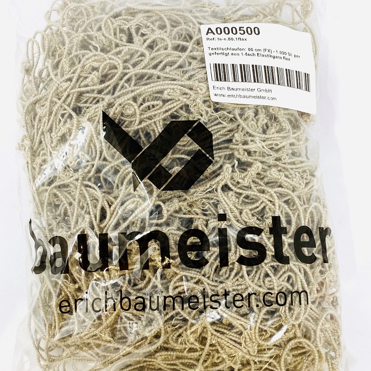Abmessung: 6 cm flache Länge = 12 cm Gesamtlänge. Dehnung: ~ 140 % Dehnung. Fadenstärke: ~ 1 mm